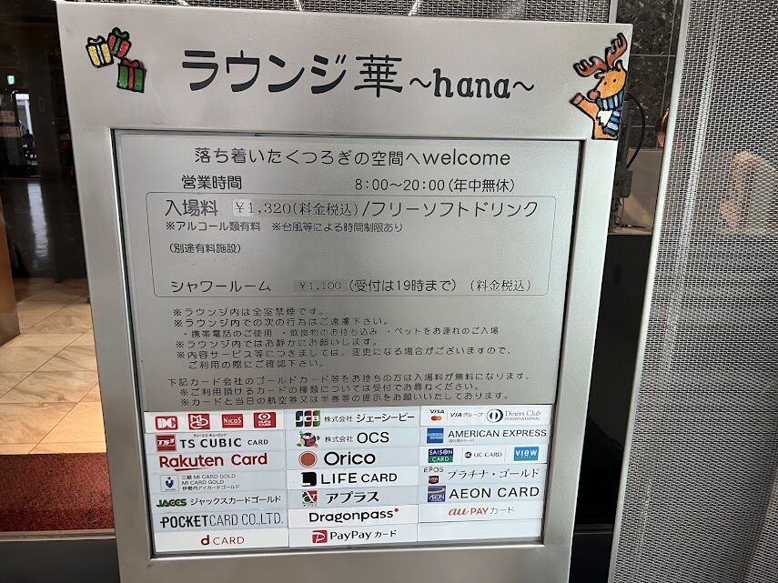 沖縄の那覇空港にある「ラウンジ華~hana~」はゴールド以上のクレジットカードを持っていると「無料」で利用することができます。