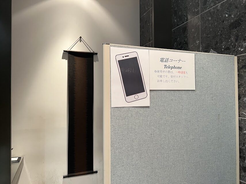 - 電話コーナー:ラウンジ内は通話NG。電話したい場合は受付横の専用ブースへ。