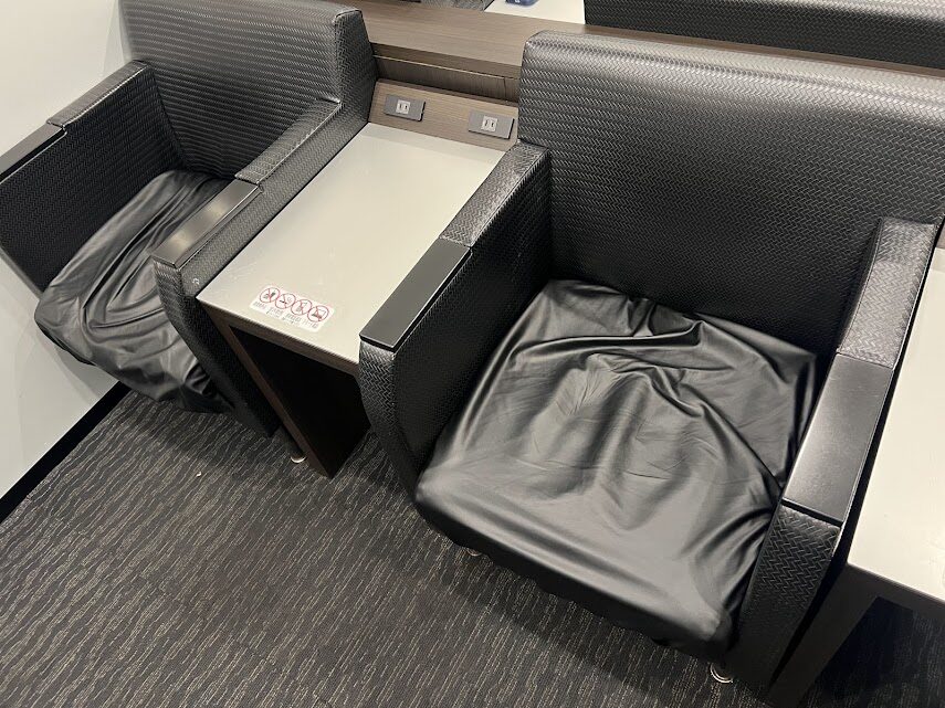 ソファ・カウンター席合わせて48席ほどで、あまり広くありません。1日中混んでおり、特に15〜18時頃はほぼ満席ですが、19時頃以降は搭乗便が少なくなるため比較的ゆったりと過ごせます。時間に余裕があれば夜利用を狙うと快適度がアップします!